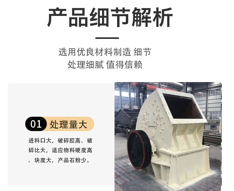 1、進料口大、破碎腔高、適應物料硬度高、塊度大、產品石粉少;