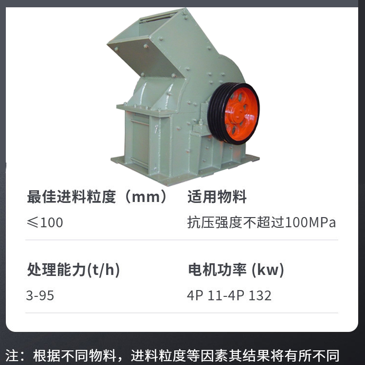 錘式破碎機(jī)用于破碎各種中硬且磨蝕性弱的物料,其物料的抗壓強(qiáng)度不超過100MPa,含水率小于15%。被破碎物料為煤、鹽、白堊、石膏、磚瓦、石灰石等。